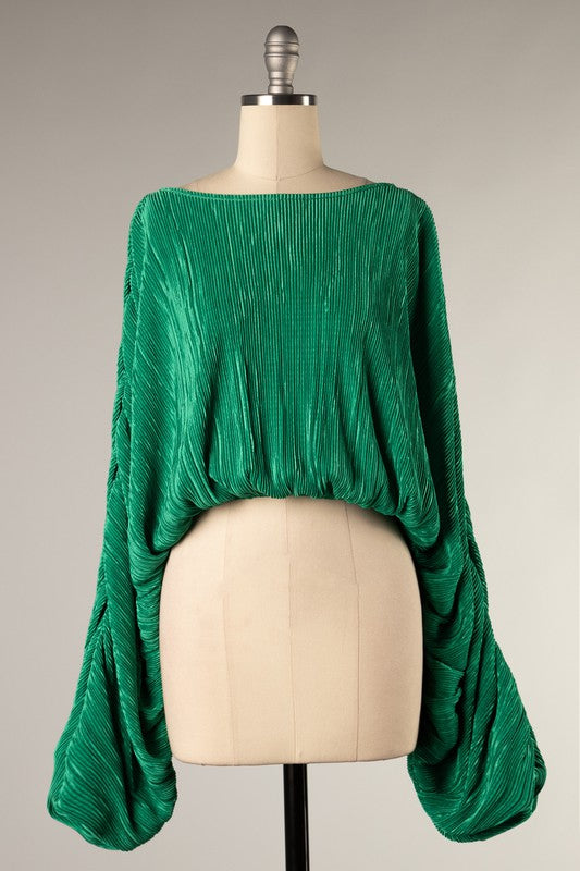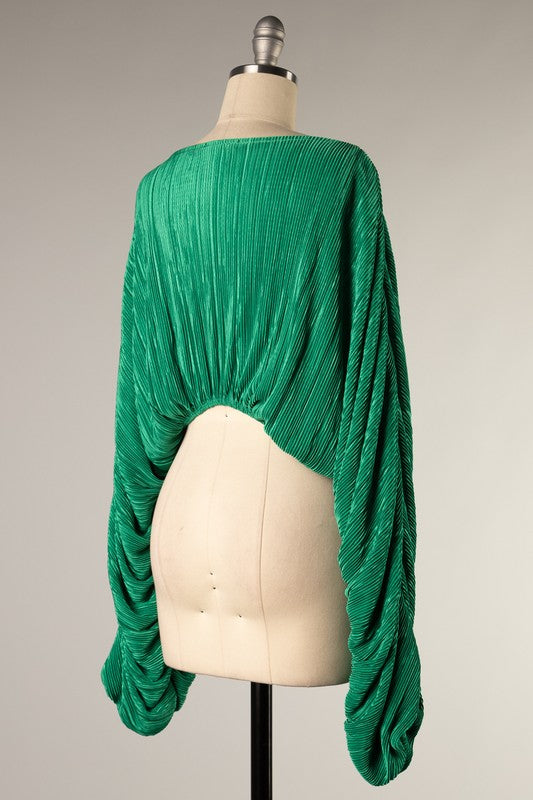 Crinkle exaggerated sleeve top 95% POLYESTER, 5% SPANDEX Made in USA